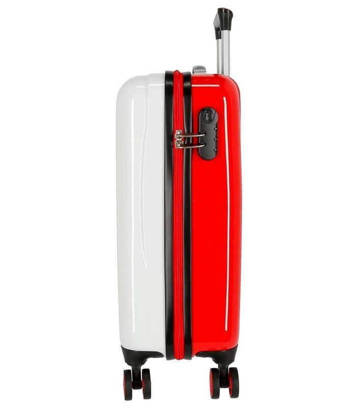 JOUMMABAGS Cestovní kufr ABS Mickey Circle red 55 cm Luxusní cestovní kufr ABS Mickey na cesty, tábor či školku v přírodě. Disney Kufr na kolečkách je s motivem oblíbené kreslené postavičky Mickey Mouse z krátkých pohádek Walta Disneyho na jasně...
